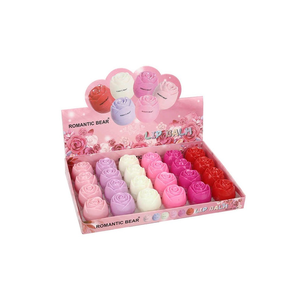 - 24-pzas Natural Organic Vegan Cute Fruit Lip Balm Moisturizing Korean Cosmetic Rose Flower Lovely Organic Lip Balm Bulk