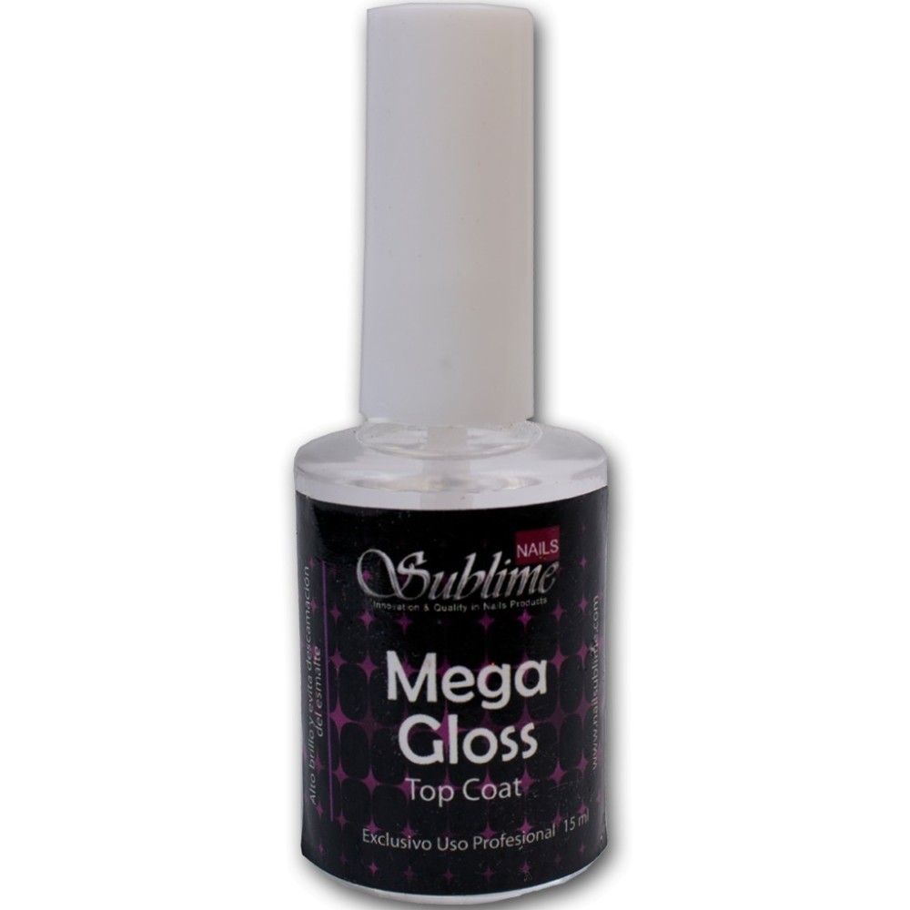 Top Coat "Megagloss" 15ml, brillo espejo y protección extrema.