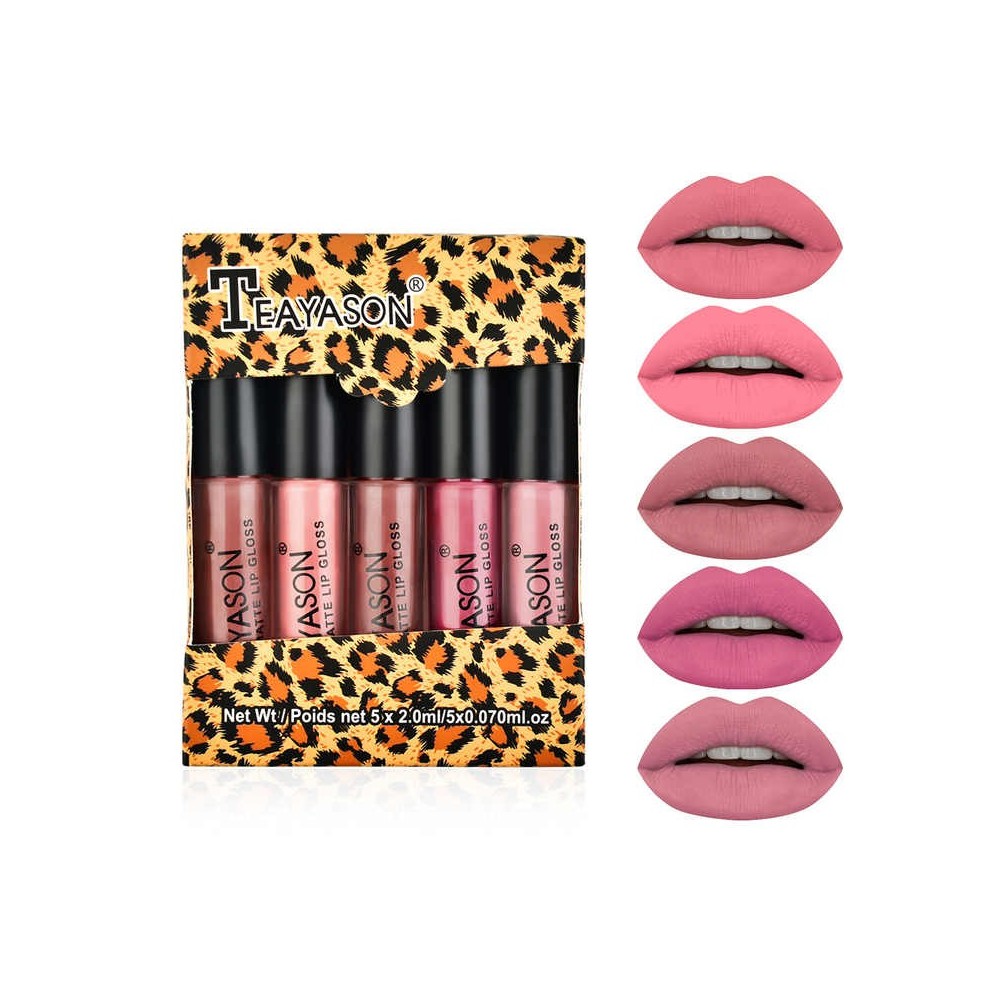 - Waterproof Velvet Matte Lip Gloss Set Gift Box Dragon Ranee Long Lasting 5Pcs Glossy Cute Lip Gloss Combo Set
