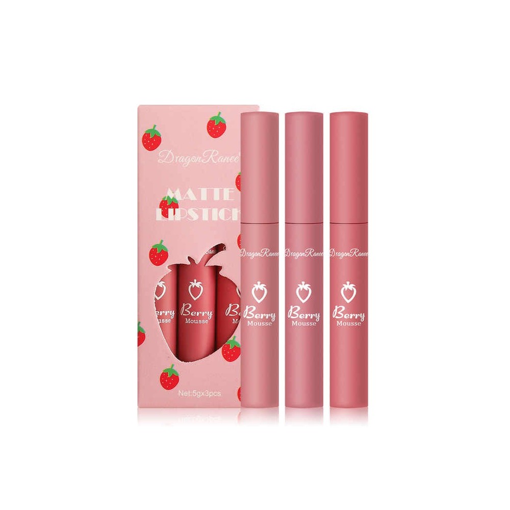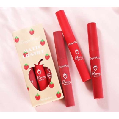- Waterproof Velvet Matte Lip Gloss Set Gift Box Dragon Ranee Long Lasting Strawberry Glossy Lip Gloss Combo Set