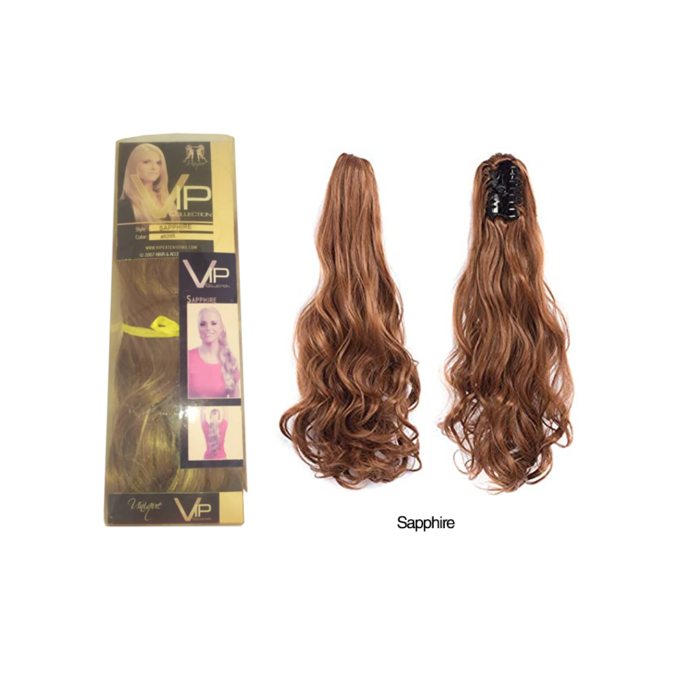 Extensión de cabello sintético tipo clip-in en un vibrante tono zafiro. Se coloca y retira fácilmente, permitiendo un cambio de look instantáneo y divertido, ideal para añadir toques de color o volumen.