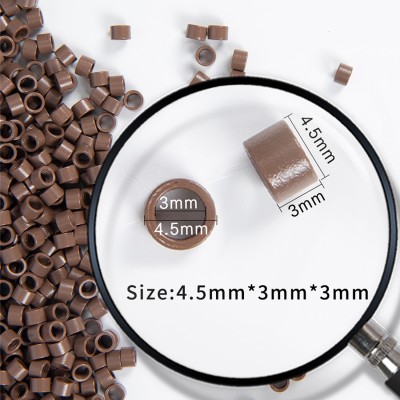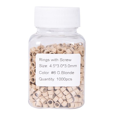 Envase de 1000 unidades de micro rings en tono rubio medio. Perfectos para profesionales que realizan gran volumen de aplicaciones, asegurando una fijación invisible y duradera de extensiones en cabellos claros.