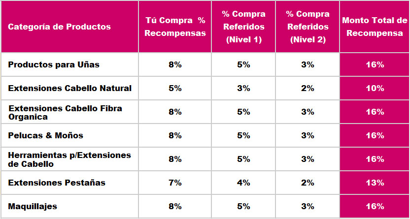 Sublime Belleza te ofrece porcentajes de recompensas, según categoría